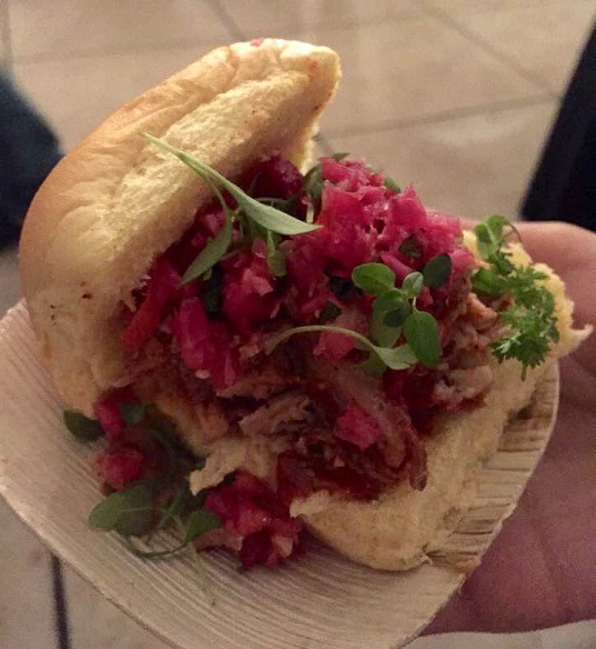 To soak up some of that alcohol was some delicious porky goodness. Ten heritage pig farmers teamed up with a notable chef to roast whole pigs, and then create a tasty dish highlighting each particular pig breed. My favorite ended up being the Mangalitsa pig, transformed into super tasty pulled pork on a bun, topped with pickled veggies. The combination was perfect, and the pickled veggies cut through some of the richness from the pork.