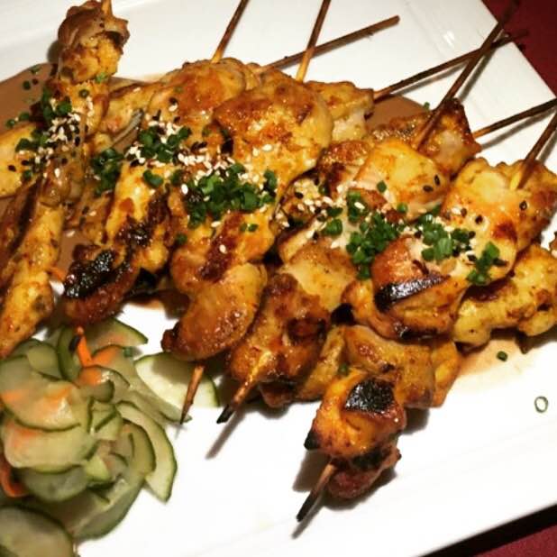 GRILLED CHICKEN SKEWERS | grilled chicken, peanut sauce
