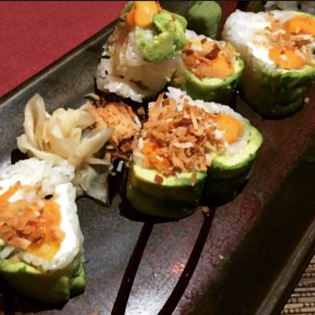 EBI ROLL | Shrimp Tempura, Coconut, Cream Cheese, Mango, Avocadom Habanero Aioli Nitsume