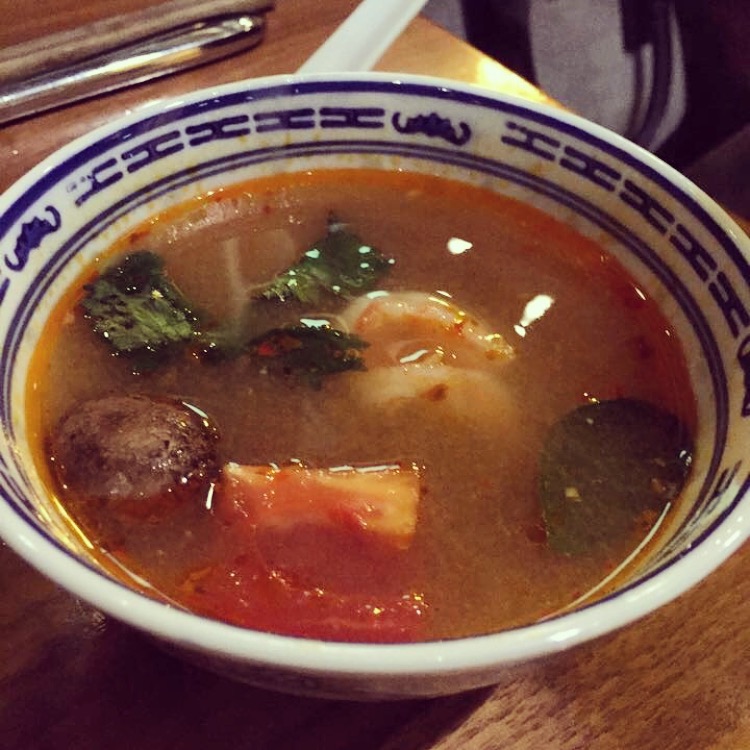 Classic Thai Hot & Sour soup with shrimp, galangal, lemongrass, kaffir, tomatoes, onions, mushrooms, cilantro. The broth of this soup is so complex and warming. The shrimp were also perfectly cooked (not overcooked as it could easily be).