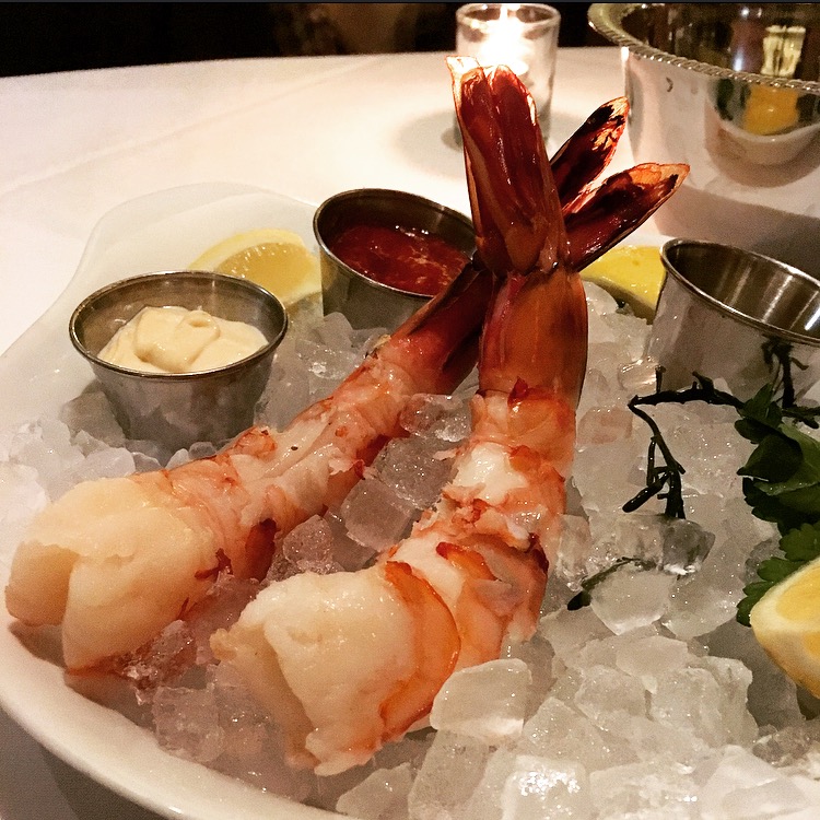 For our first course, we went with some seafood to start: SHRIMP COCKTAIL (about 1/2lb each!) & KING CRAB (1/2 lb, steamed with butter)