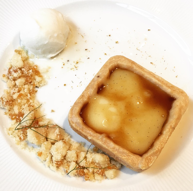 CROSTATA DI “BUTTERMILK” | buttermilk crostata with amaro syrup, fennel & orange streusal, candied orange zest and yogurt-licorice gelato