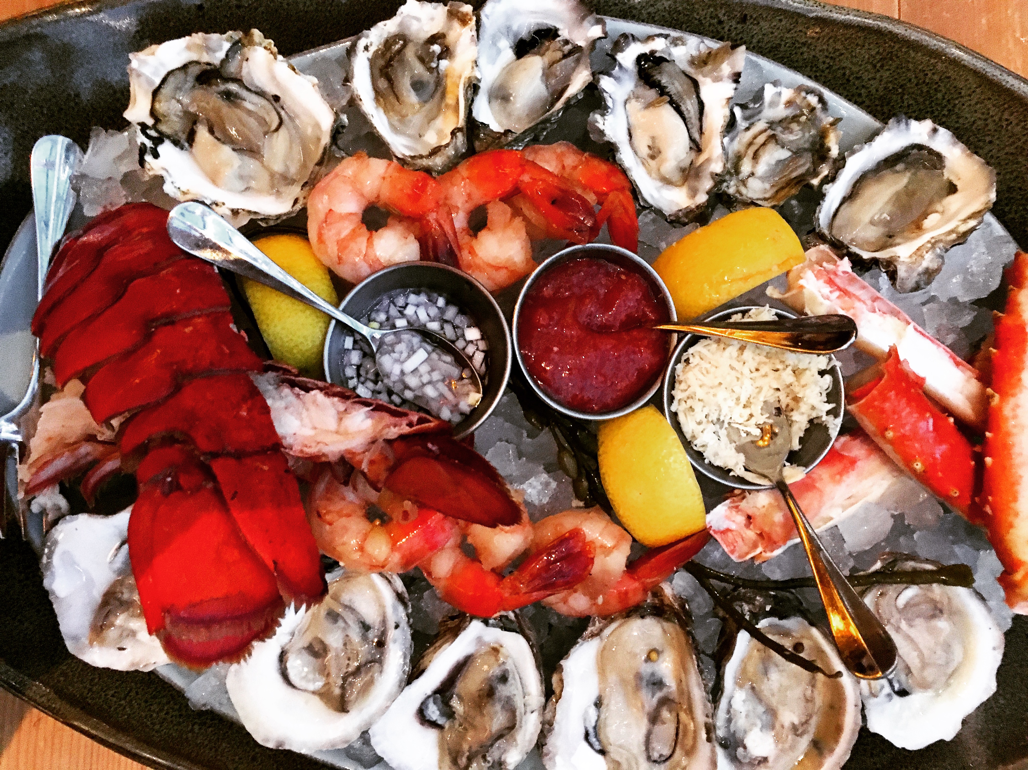 SHELLFISH PLATTER | maine lobster, shrimp, oysters on the half shell, king crab legs, white balsamic mignonette, lemon & tobasco