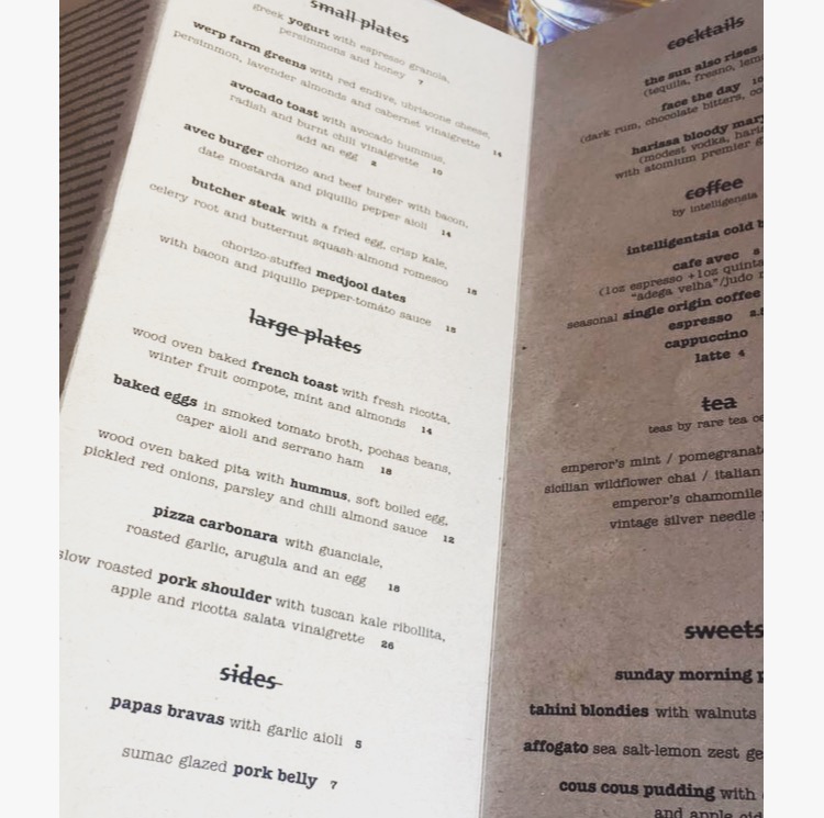 We started off with some cocktails and then ordered almost everything on the food menu 🙂 Of course, the main reason anyone ever goes to avec is for one specific dish: stuffed dates. It’s become the dish they’re known for and it’s almost a cult following at this point. Does it live up to the hype? Every time. Luckily, it’s also on both the dinner and brunch menu!