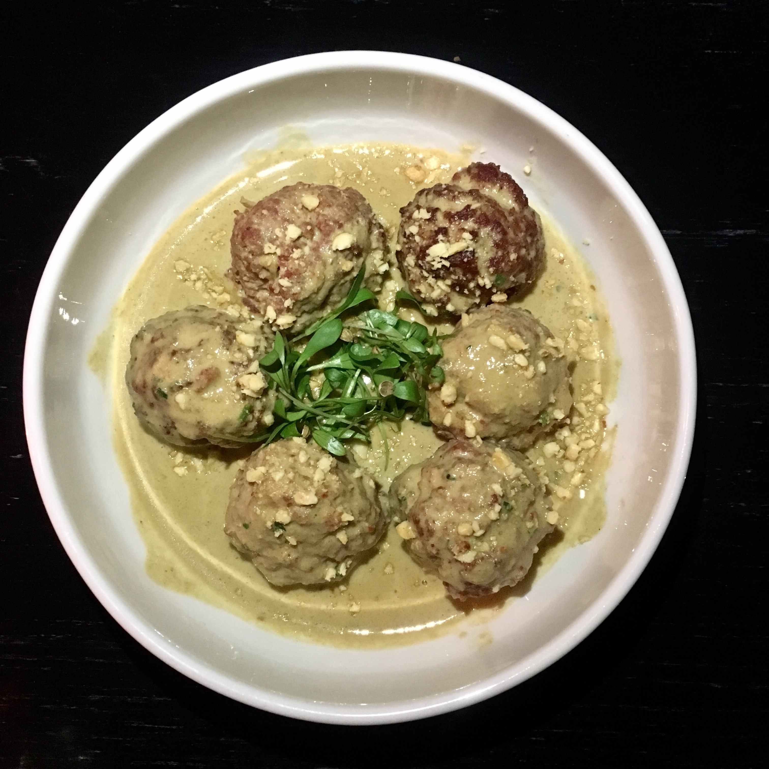 ALBONDIGAS | pork and beef meatballs, aji de mani, peanut, cilantro