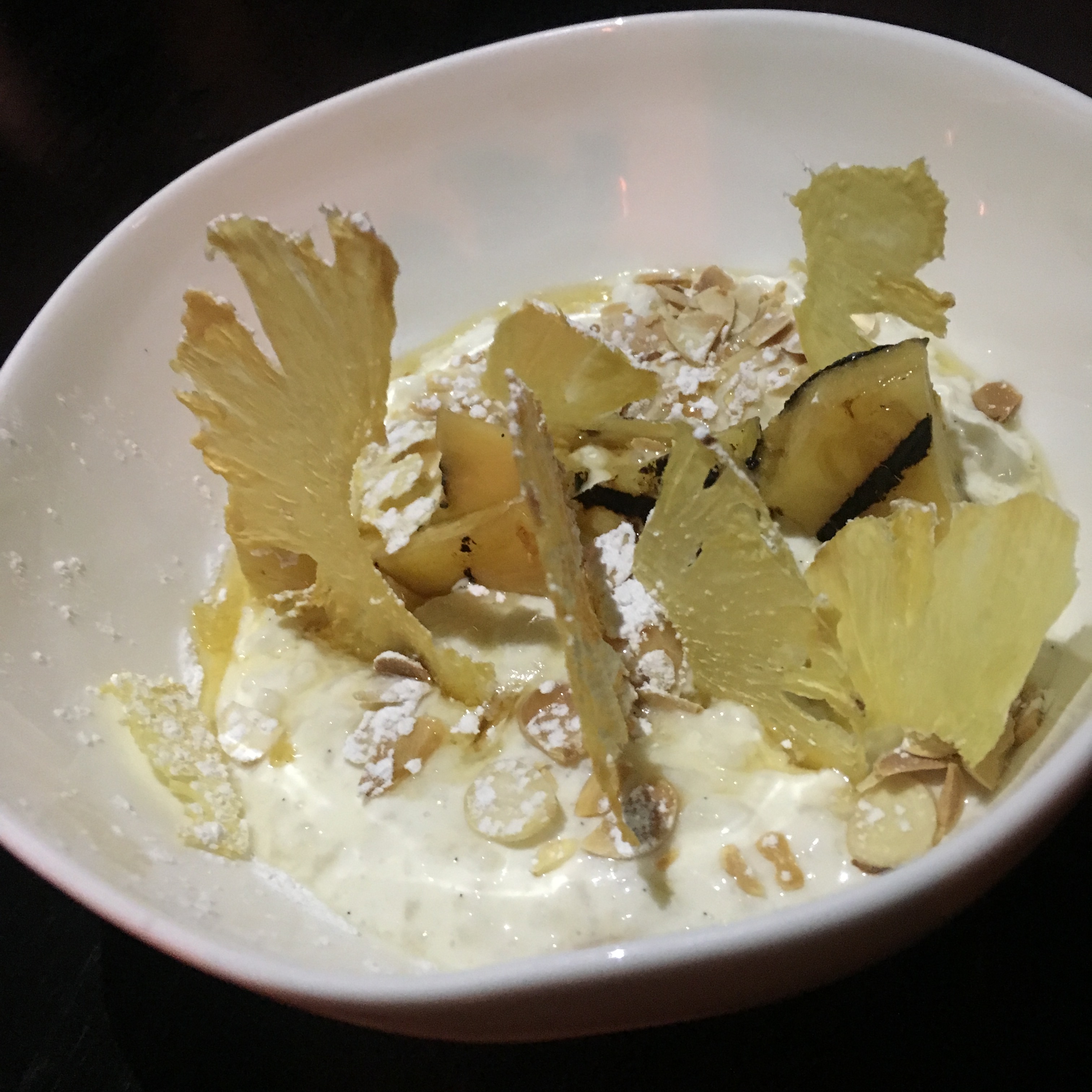 ARROZ CON LECHE | vanilla rice pudding, roasted pineapple, toasted almonds