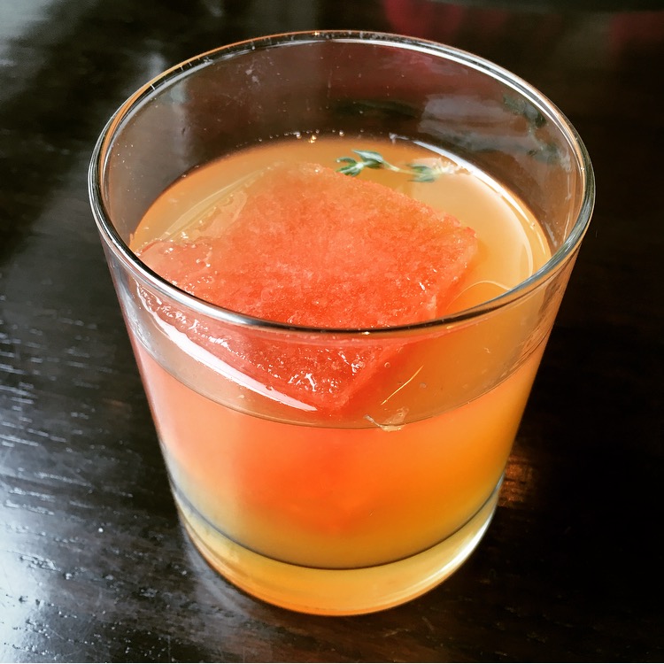 LA RUSA | intipalka acholado pisco, st. germain, orange, lemon, campari ice, fresh thyme