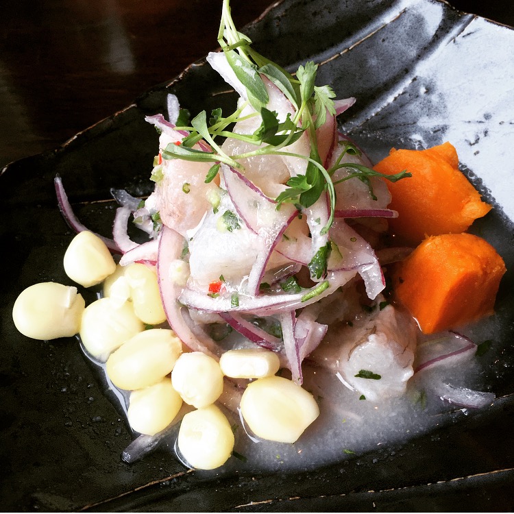 CEBICHE CLASICO | seasonal fish, leche de tigre, cilantro, habanero, choclo, sweet potato
