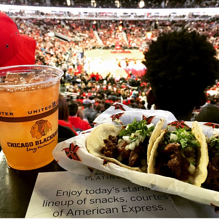 One of the goodies was a gift certificate to use for any additional snacks or drinks while at the game. You may know that ever since Big Star opened up a kiosk at the United Center, our go-to game experience consists of tacos and their Elderflower Sour cocktail. Both options never disappoint and made for a delicious lunch while enjoying the game.