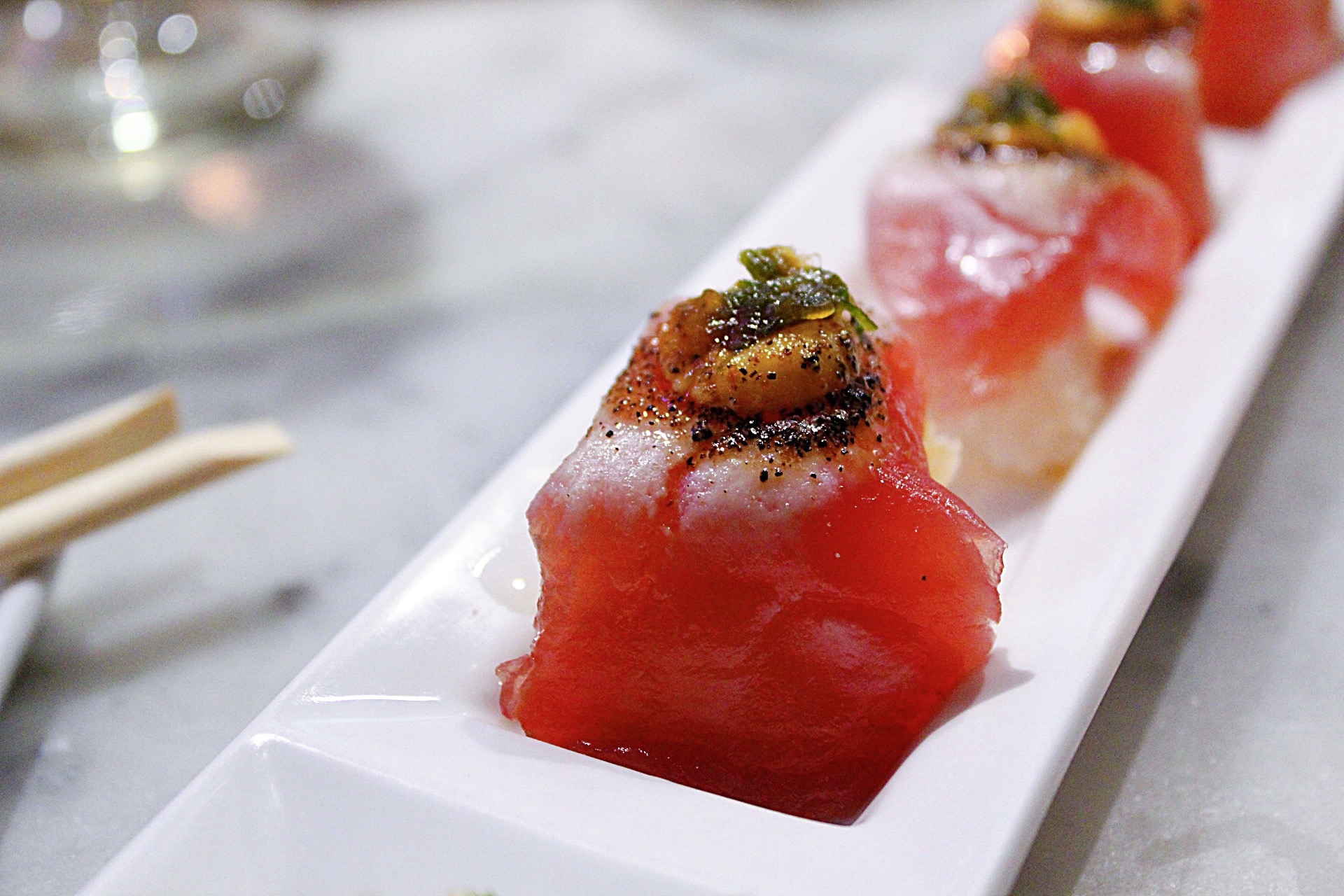 1. They offer 2 omakase options – regular at $69 and premium at $110. The A5 wagyu pictured above was part of the $110 premium omakase, but we spotted it being prepared in the kitchen and asked if we could order just that a la carte. They happily obliged and it was the single best bite of meat we’ve ever had. That’s saying a lot because we’ve also had A5 at RPM Steak, and while theirs was also amazing, it was the overall bite served at Kai Zan that puts it at the top.